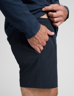 - Relaxed fit with a 5″ inseam