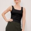 - Midi length, 25″ inseam extends to between calf and ankle
